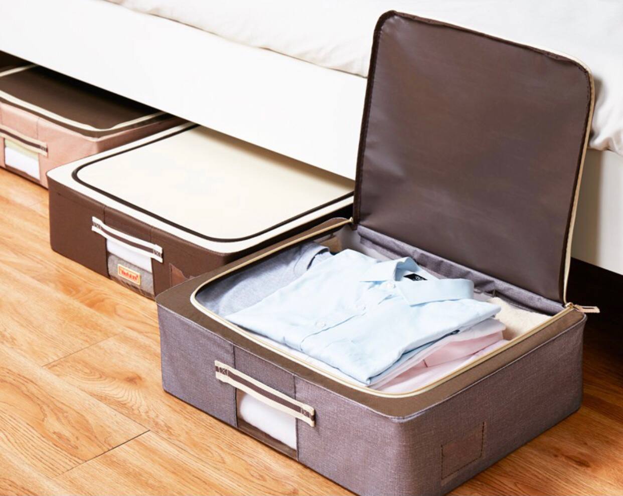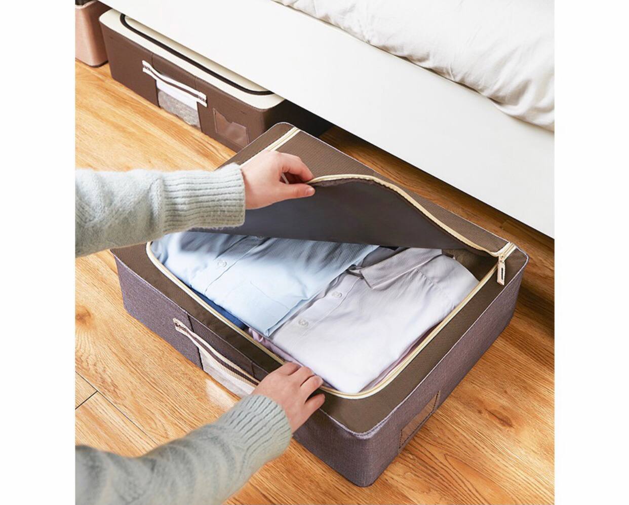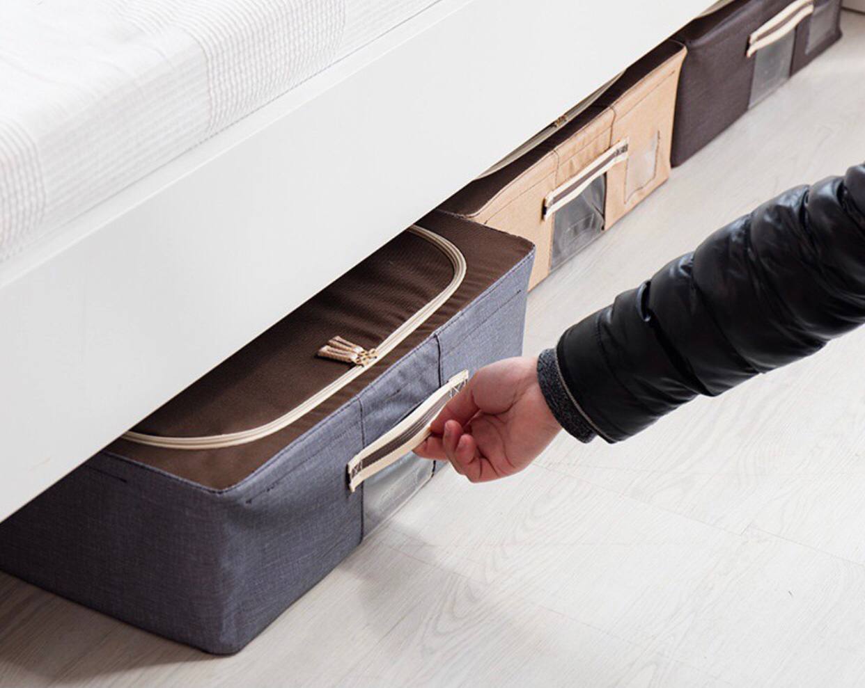 شاید برای شماهم پیش آمده باشد که کمدها و کشو های اتاقتان از لباس پرشده باشد و جایی برای قرار دادن لباس های جدیدتان نداشته باشید. یا زمانی که فصل تابستان شروع می شود نمی دانید لباس های زمستانی خود را کجا نگهداری کنید یا بالعکس. برای اینکه بتوانید بعد از پرشدن کمدهایتان و کم آوردن کشو، لباس هایتان را در محلی مناسب با حفظ نظم و پاکیزگی نگهداری کنید استفاده از باکس لباس زیرتختی را به شما پیشنهاد می کنم. که علاوه بر قرار دادن آن زیر تخت ، میتوانید زیر میز ، کمد و کنار دیوار اتاقتان نگهداری کنید.