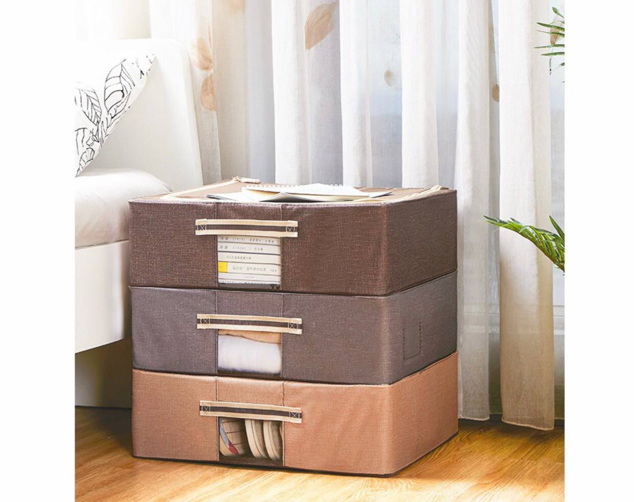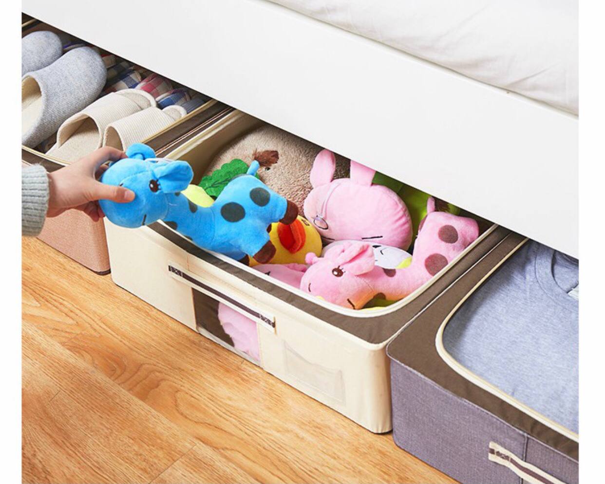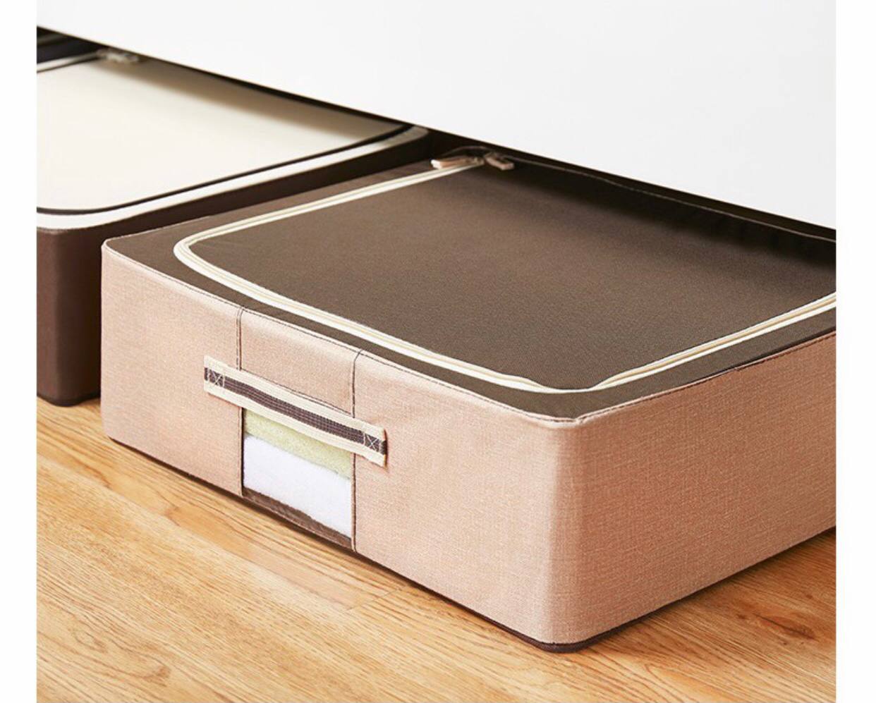 اندازه این باکس مناسب است و به هیچ عنوان جاگیر نیست در عین حال عمق زیادی دارد و میتوانید تعداد زیادی از وسایلتان را در این باکس به خوبی نگهداری کنید. همچنین از این محصول می توانید به عنوان ساک دستی در سفرها و جابجایی ها استفاده کنید. جنس پارچه استفاده شده در این باکس بسیار محکم، ضخیم و باکیفیت است. بنابراین در برابر پوسیدگی، چروک شدن، حشرات و... مقاوم است. دسته مقاومی در بالای باکس قرار داده شده است تا حین حمل نقل و بیرون آوردن باکس از زیرتخت دچار مشکل نشوید. میتوانید انواع پوشاک، اسباب بازی، کفش و دمپایی ، کتاب و مجلات، اکسسوری ،روسری و شال، حوله و پتو و... را در این باکس های زیبا و جادار به صورت دسته بندی شده قرار دهید. زیپ این باکس در قسمت بالای آن قرار گرفته است و به راحتی پس از باز کردن آن به وسایل چیده شده دسترسی پیدا می کنید بدون آنکه نظم وسایل بهم بخورد.